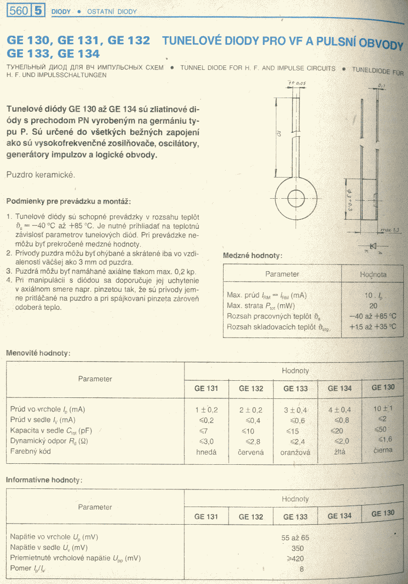 Katalog elektronických součástek - TESLA GE134 (VF tunelová dioda)