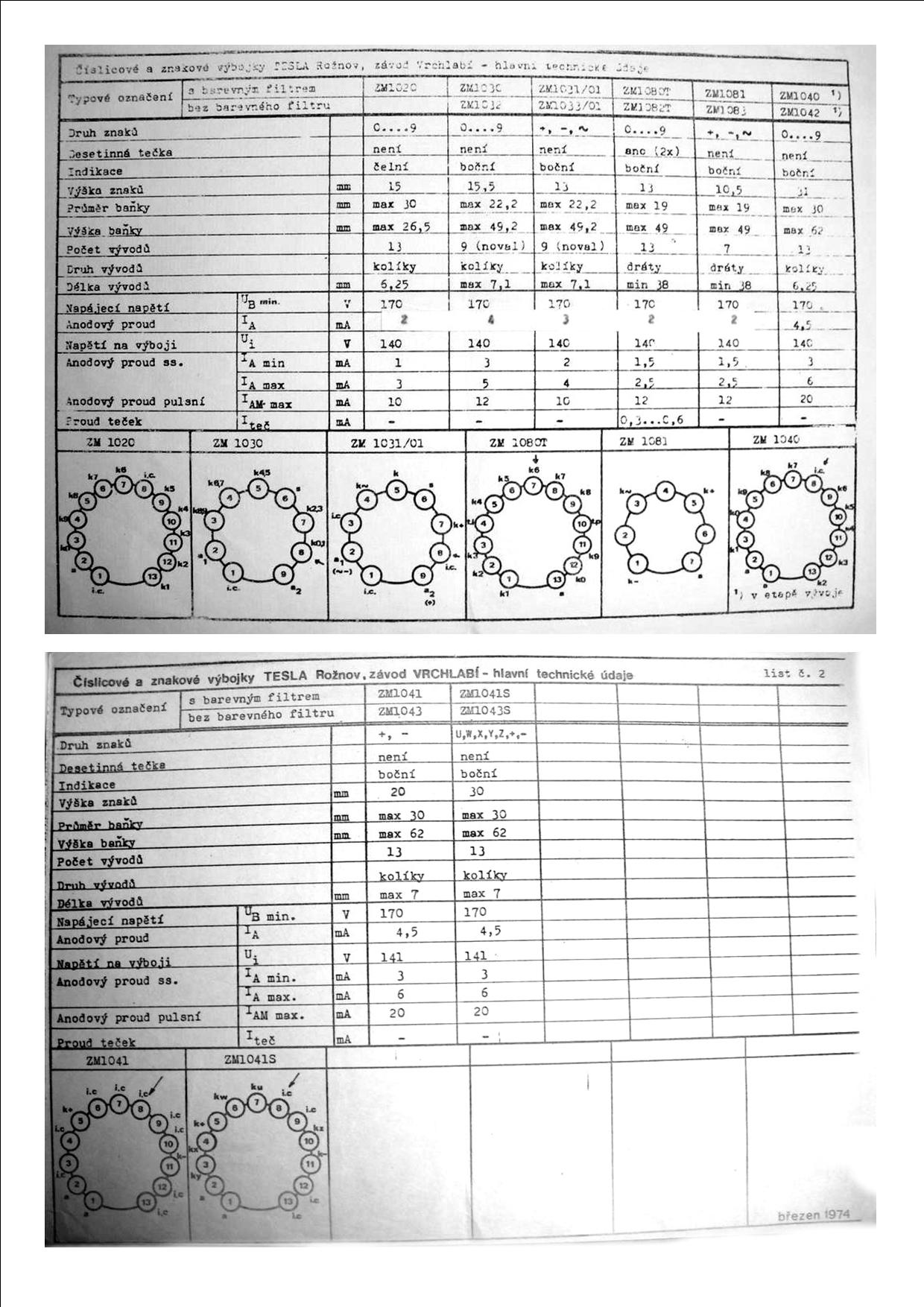 Katalog elektronických součástek - TESLA ZM1033/01 (Digitron - elektronkový indikátor)