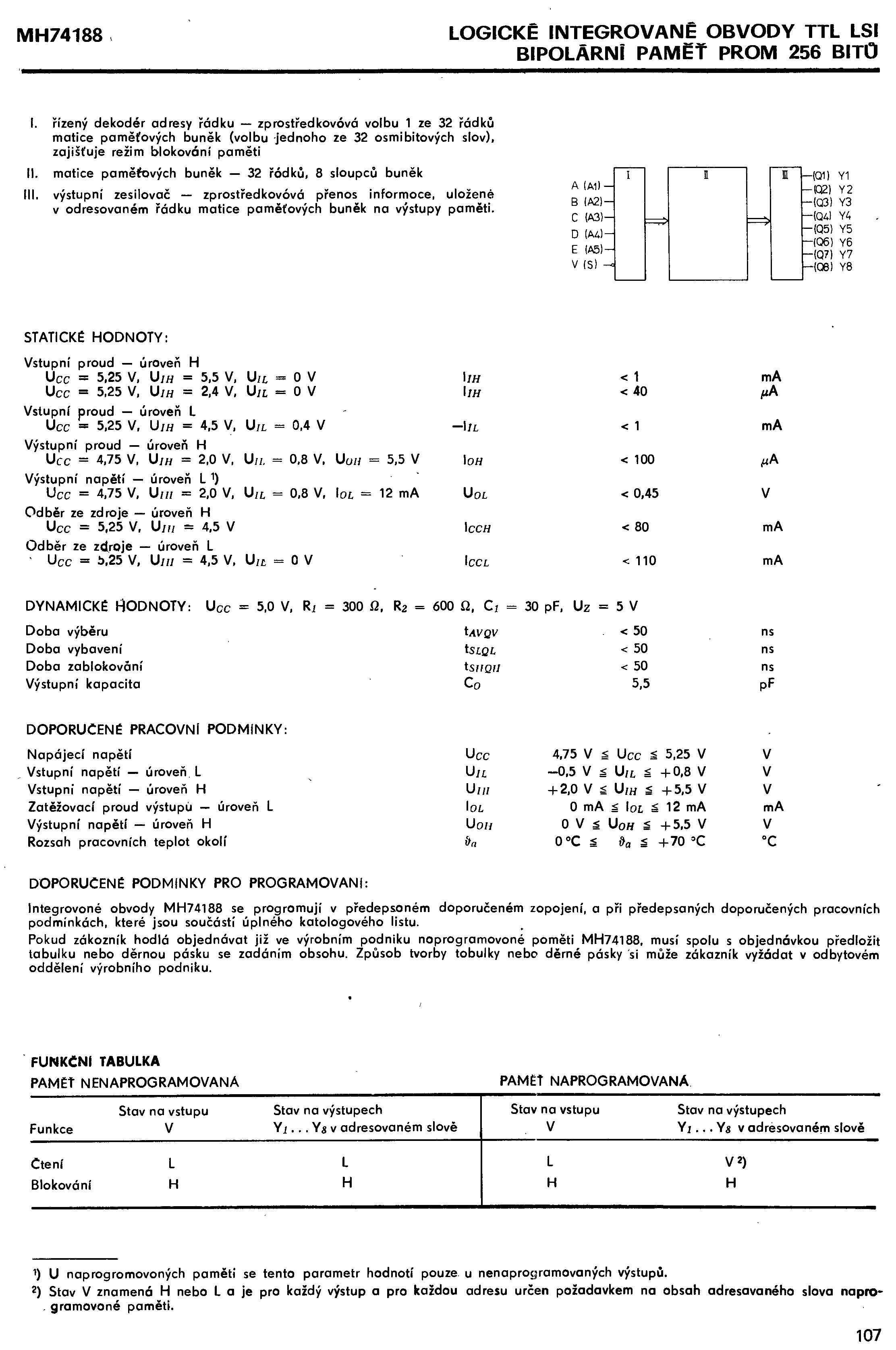 Katalog elektronických součástek - TESLA MH74188 (Integrovaný obvod číslicový TTL)